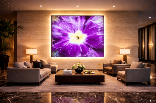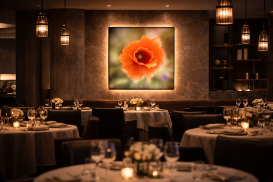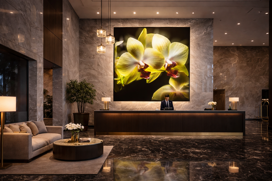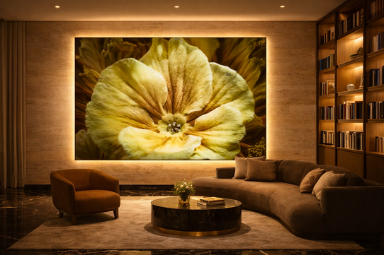 FLORES LUMINOUS In this series, the floral form is magnified until it loses its fragility and becomes architecture. Light does not illuminate the subject — it emerges from within it. The image becomes a field of color, density, and quiet intensity. Each work is conceived as a spatial intervention rather than a framed photograph. Installed at scale, Flores — Luminous transforms walls into immersive surfaces where softness and saturation generate atmosphere. The image does not hang in space; it shapes it. Developed for hospitality and contemporary interiors, the series creates environments suspended between intimacy and monumentality — spaces where light becomes material and color becomes structure. Flores is not about flowers. It is about the luminous tension between surface and presence. | ![]() | |
