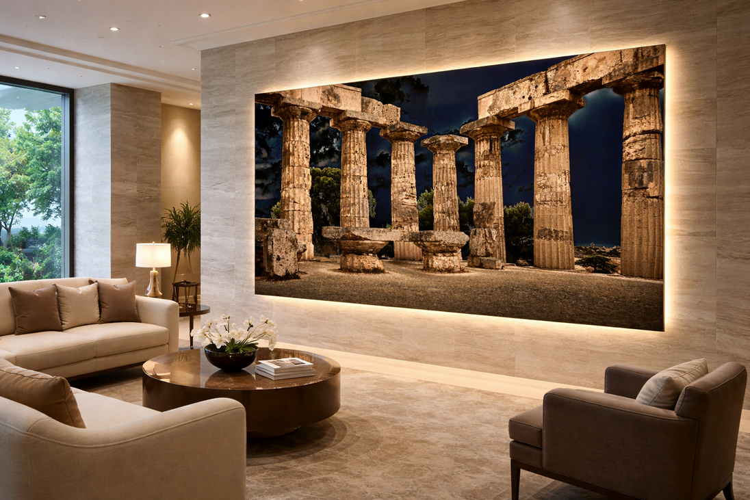 Large Format as a Visual Experience A large-format image doesn't just decorate a space: it defines it. In this way, photography becomes visual architecture, capable of transforming a wall into an immersive experience. Material, light, and detail are amplified, creating a direct dialogue between art and environment. The Wall Becomes the Protagonist In prestigious spaces, luxury hotels, corporate lobbies, and spas, the wall is no longer a backdrop. It becomes a scenic presence. Large-format works transform architectural surfaces into iconic elements, capable of giving identity and character to the space. The Impact of Detail In large-format works, every detail breathes. Texture, light, and depth emerge with a force that only monumental dimensions can express. These works are designed to dialogue with noble materials, architectural volumes, and natural light. Not just images, but artistic surfaces that complement the architecture. The image is not observed: it is experienced. A new language My large-format printed works are designed to interact with noble materials, architectural volumes, and natural light. Not just images, but artistic surfaces that complement the architecture. Technical notes Fine Art for Great Masterpieces | ||