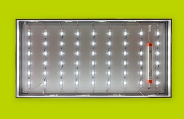 ![]() | Internal diagram of the panel with the arrangement of the LED lights and the transformer | |