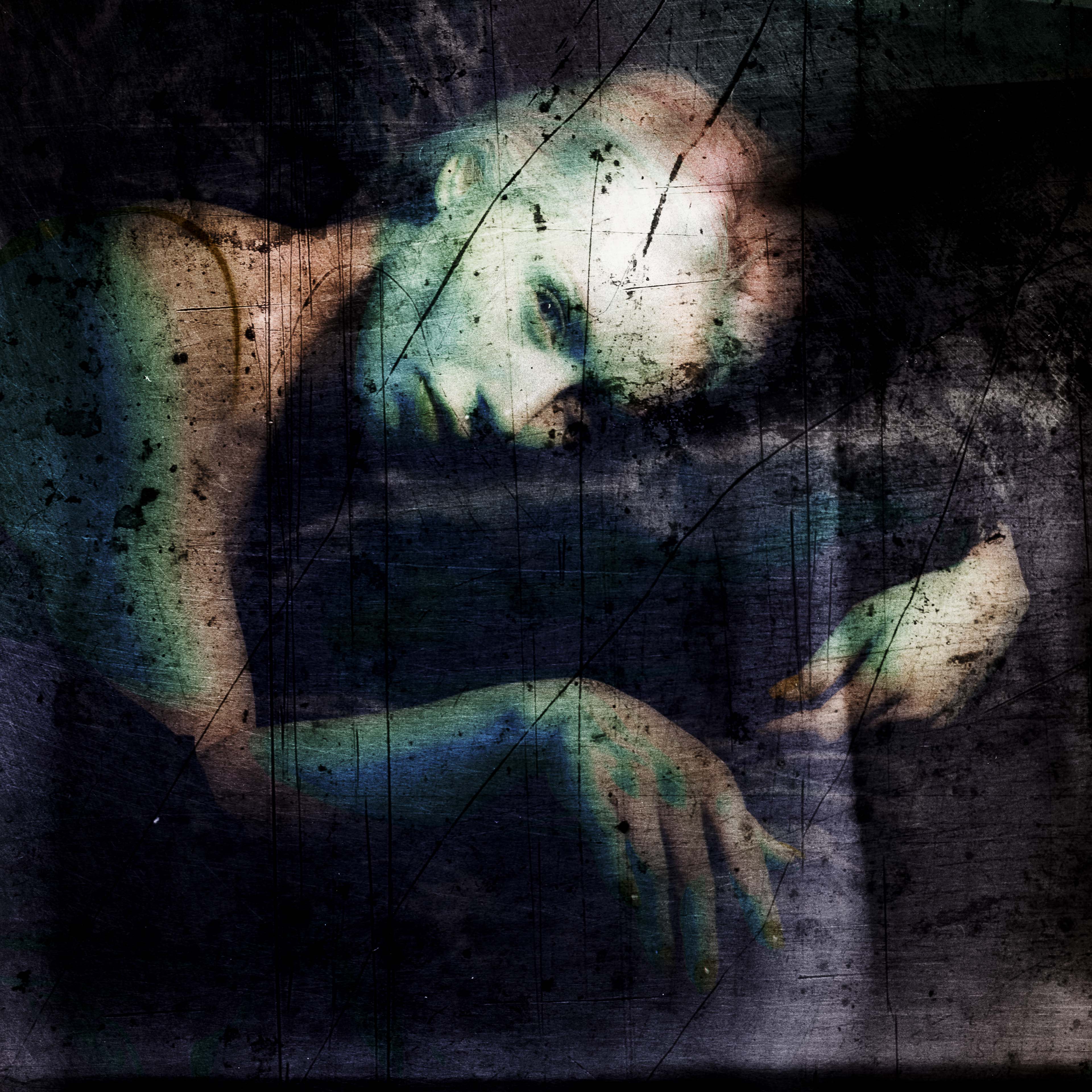 The material of the image is marked, scratched, unstable. The worn surfaces speak of a passion that is not a moment, but a process: something that leaves traces, that stratifies over time. Like the feeling it represents, photography is also exposed to the risk of excess, erosion, loss of balance.
