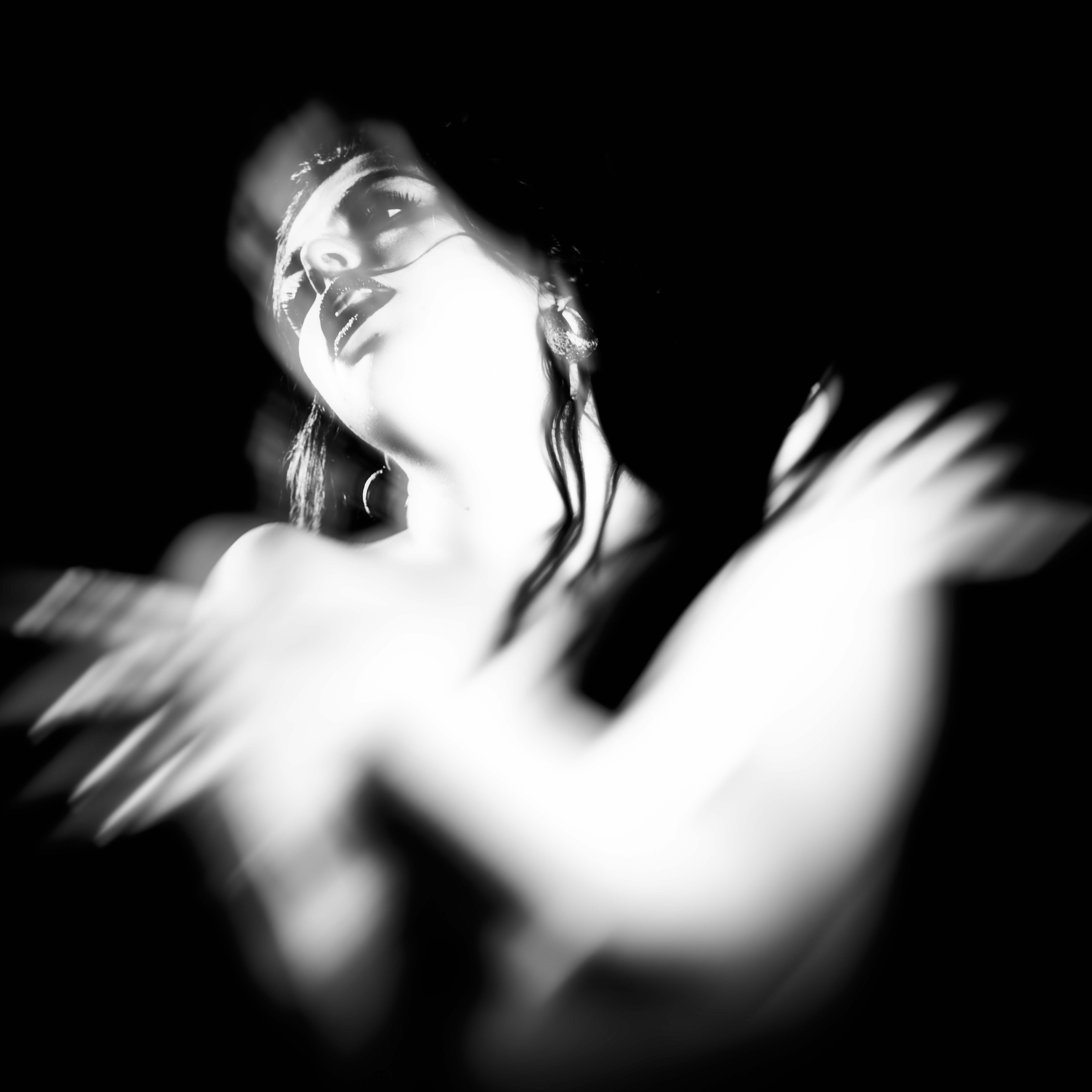 Spiriti Sfuggenti esplora il fragile confine tra presenza e dissoluzione, tra ciò che il corpo rivela e ciò che la luce sottrae. Le figure emergono da un buio denso come una memoria, attraversate da vibrazioni luminose che ne alterano la forma, trasformandole in presenze instabili, quasi evocate.